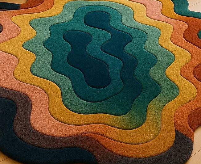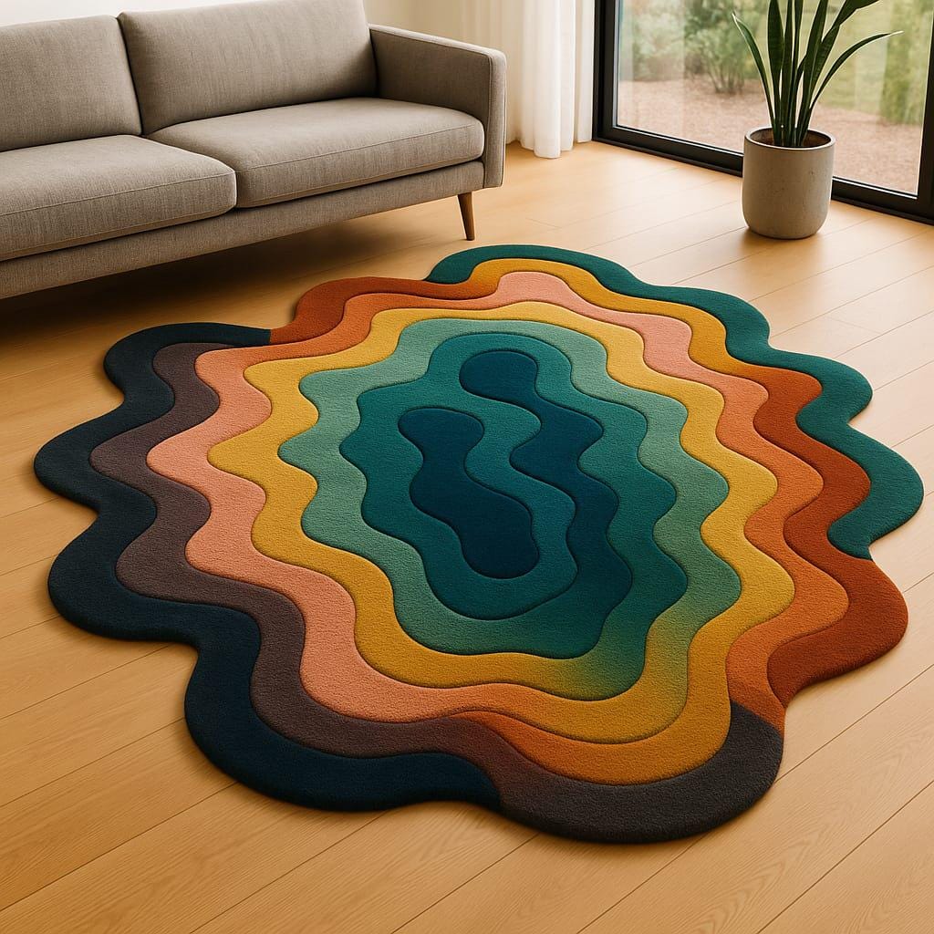 Hand-Tufted Wool Wave Rug: Irregular Multicolor Contemporary Design