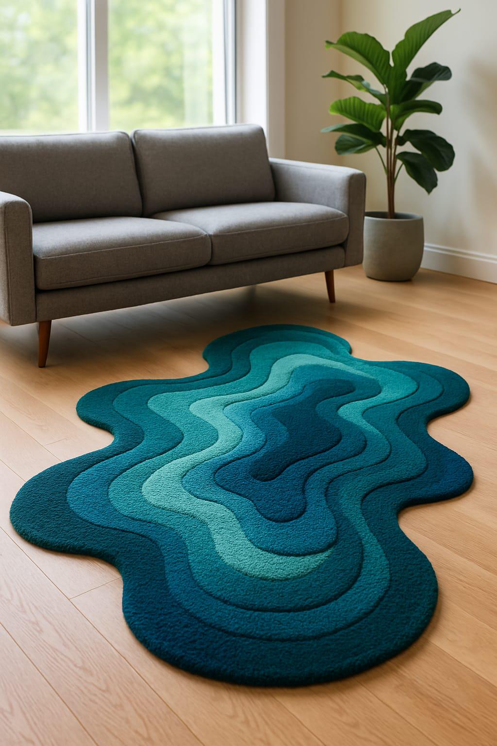 Hand-Tufted Wool Area Rug: Irregular Wave Design, Contemporary Home Decor