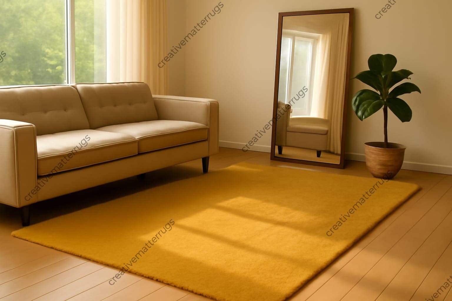 Mustard Yellow Wool Tufted Rug: Solid Color Home Decor