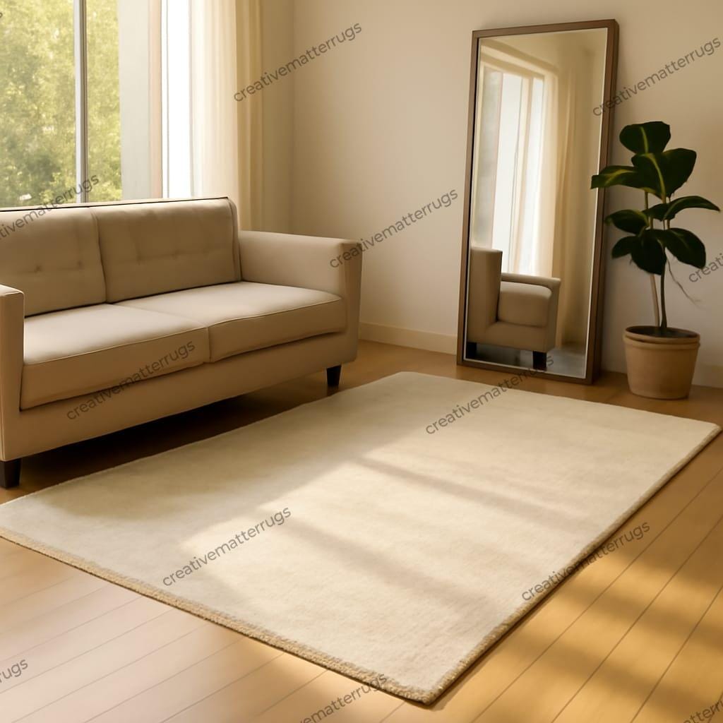 Hand-Tufted Wool Rug: Beige Tessellated Design, Living Room Decor