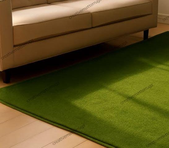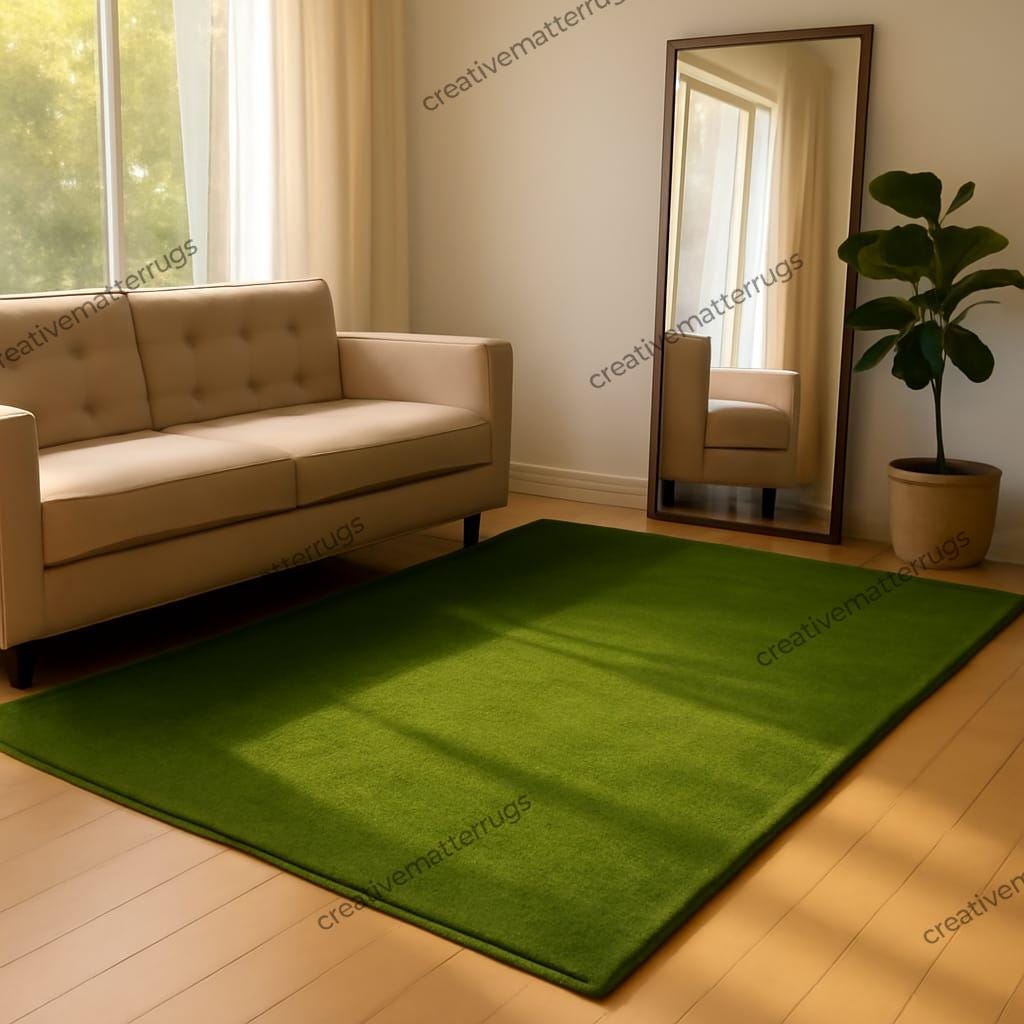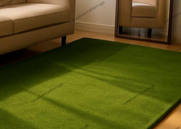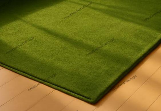 Hand-Tufted Wool Rug: Green Solid Color, Textured Pile