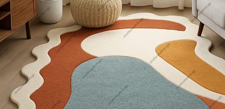 Hand-Tufted Wool Rug: Abstract Wavy Design, Bold Colors