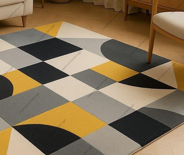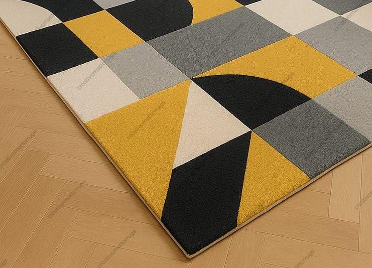 Mid-Century Modern Abstract Rug: Hand-Tufted Wool, Yellow & Gray