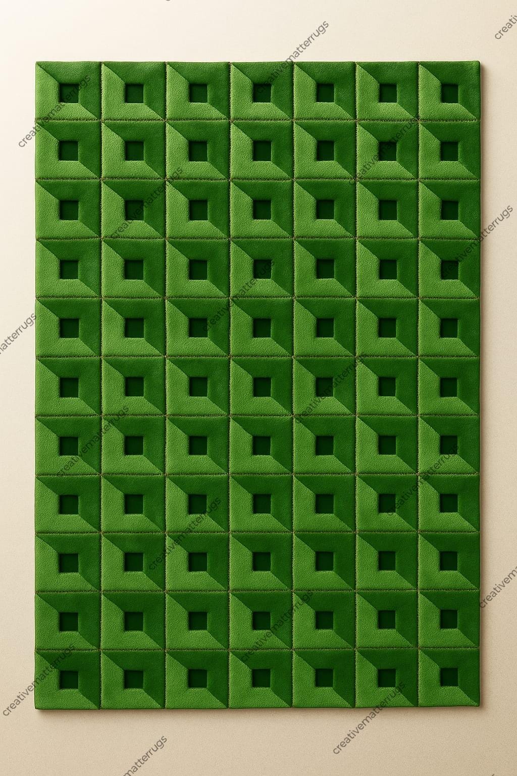 Hand-Tufted Wool Area Rug: 3D Illusion, Green Shade Tone