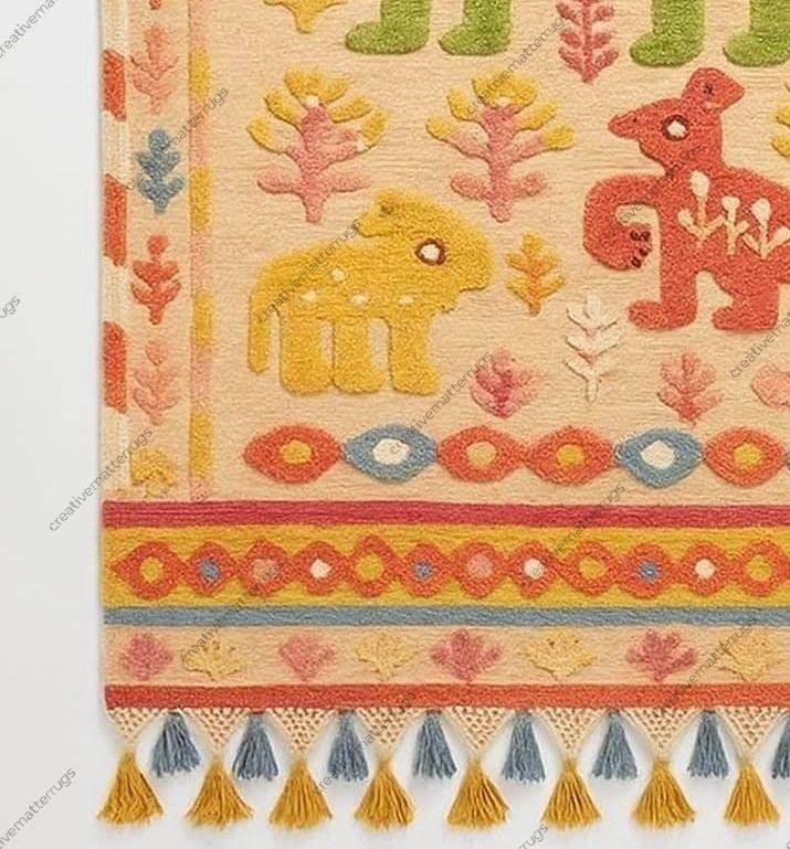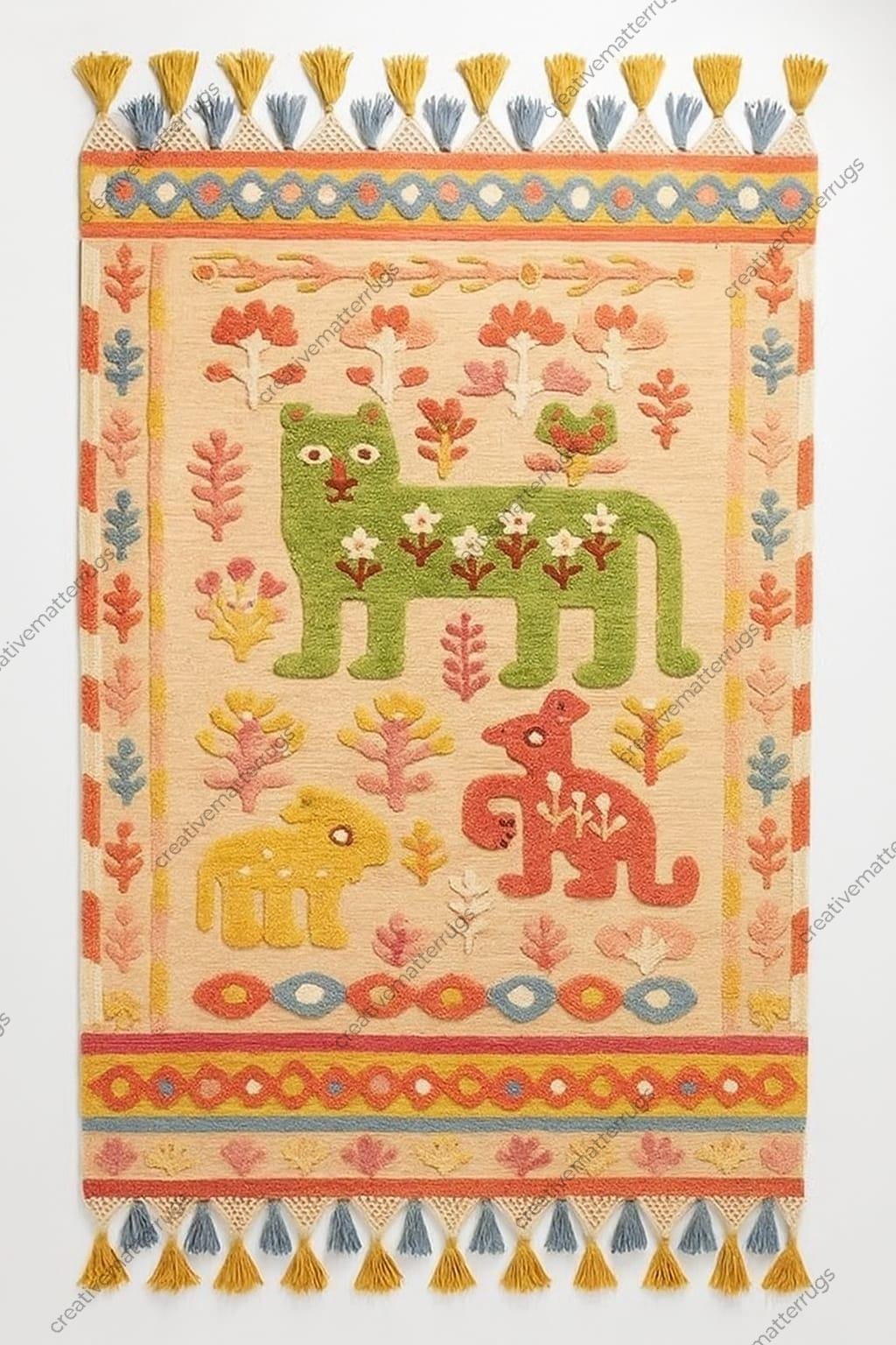 Hand-Tufted Wool Area Rug: Colorful Modern Animal Design