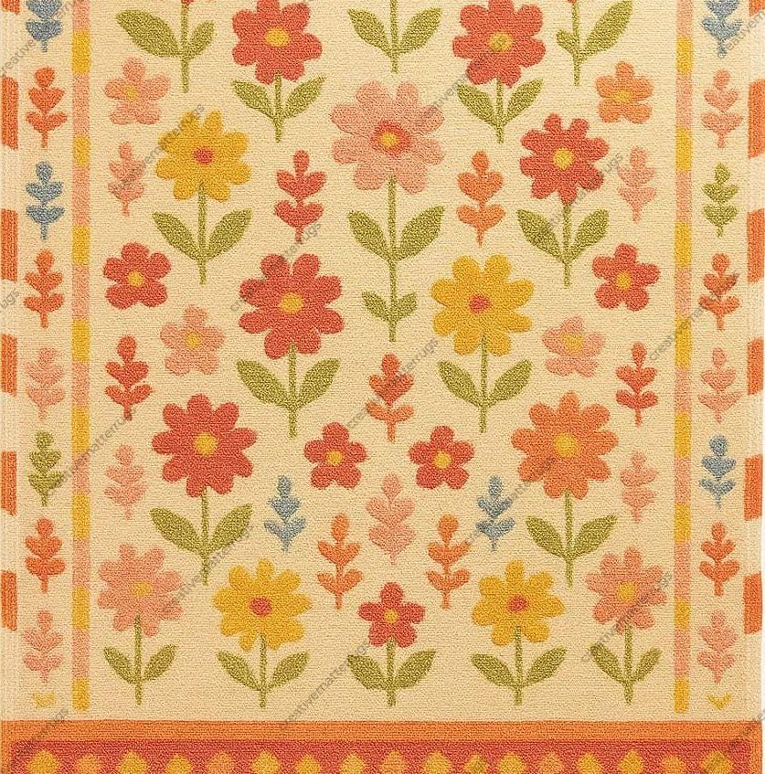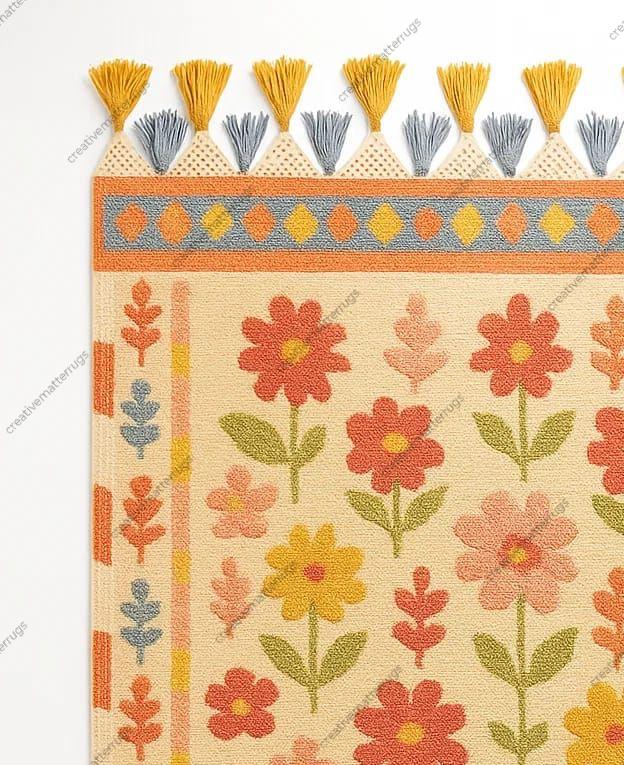 We are proud to offer our artisan-made designer Oriental or Persian style area rugs - each is a hand-tufted rug and washed for heft, beautiful luster, and subtle color. Our plush, hand-tufted wool rug depicts a field of flowers in a rich blend of contrasting hues.