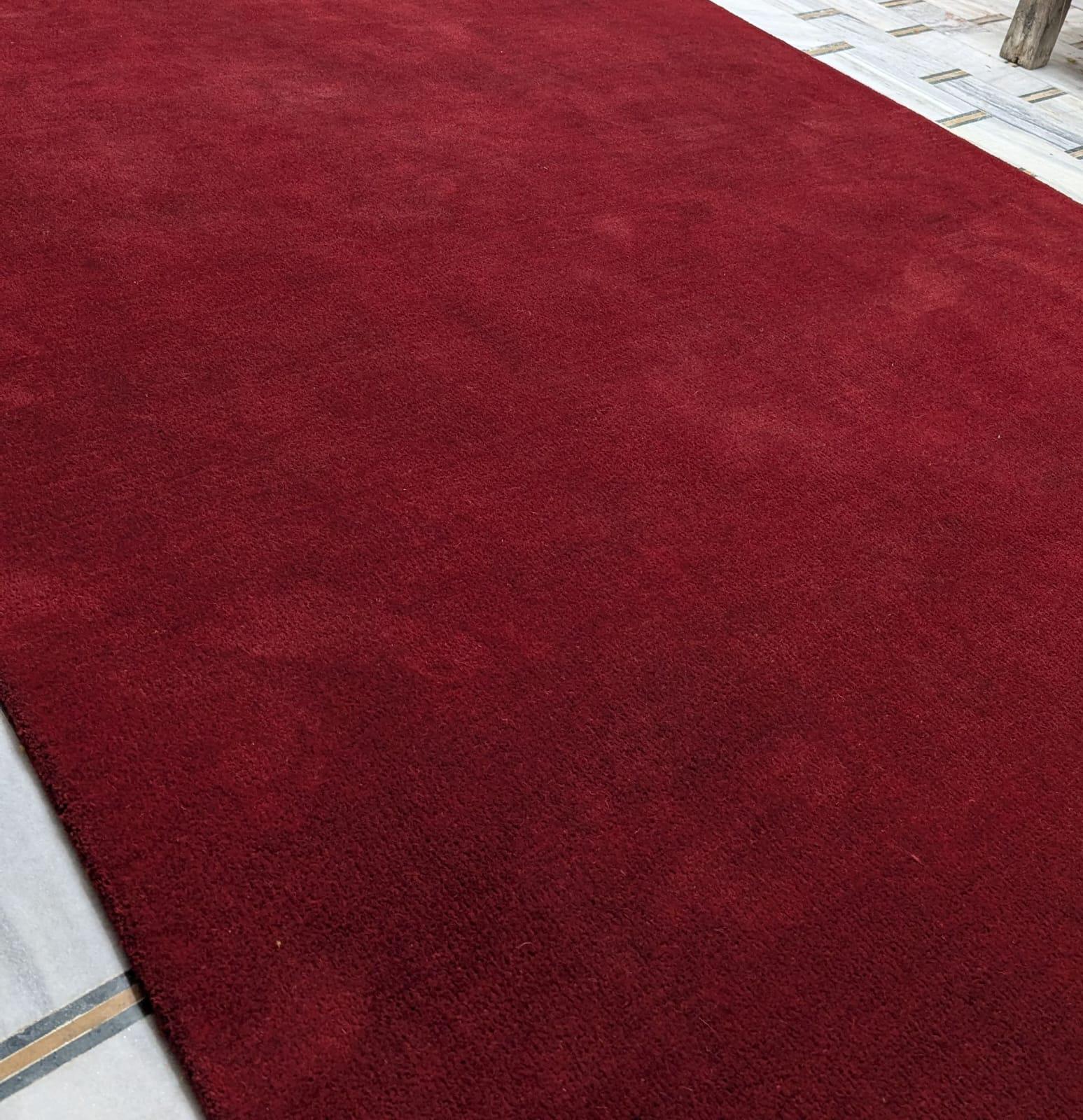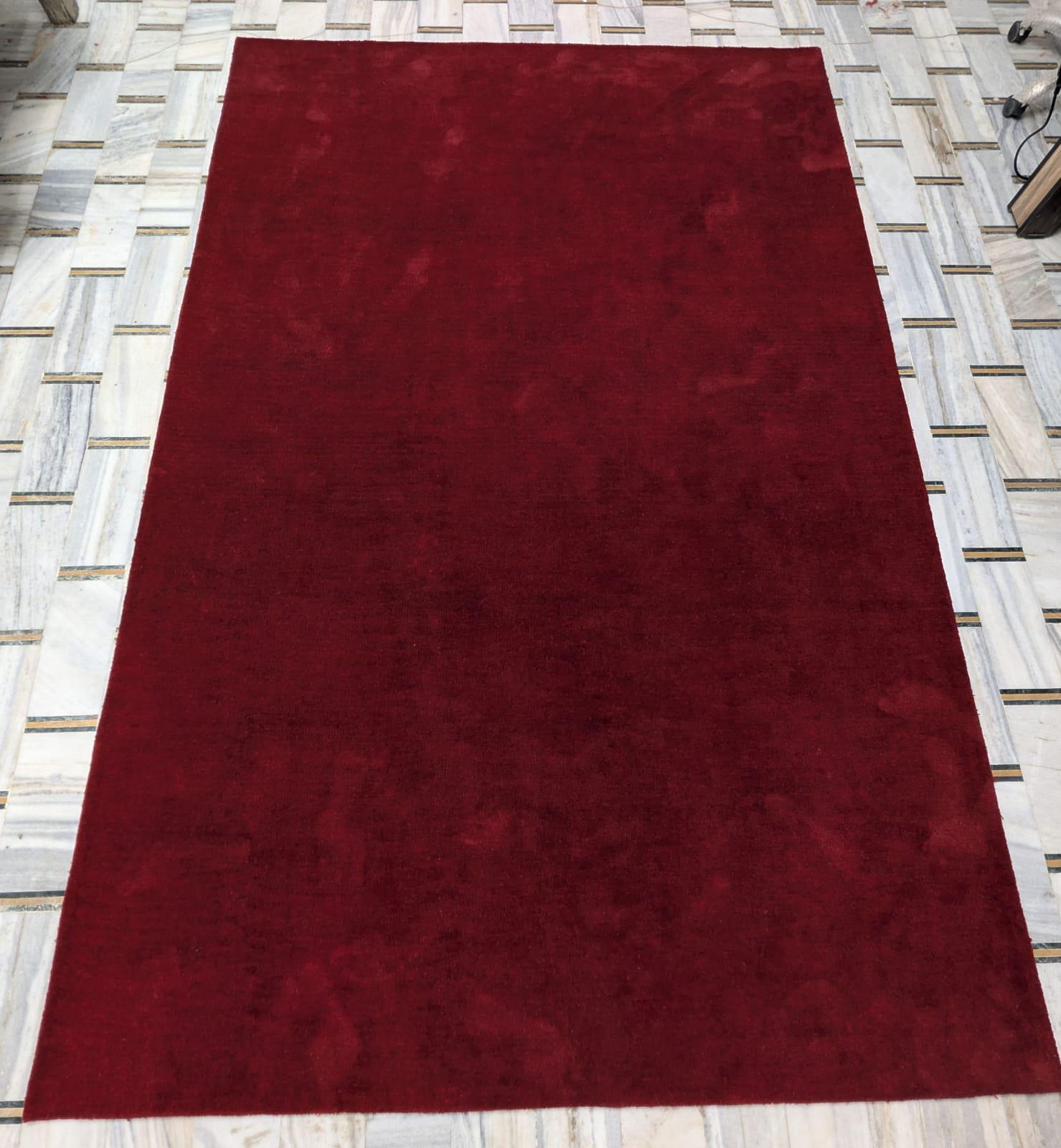 Hand-Tufted Wool Rug: Bloody Red Solid Color, Plush Pile