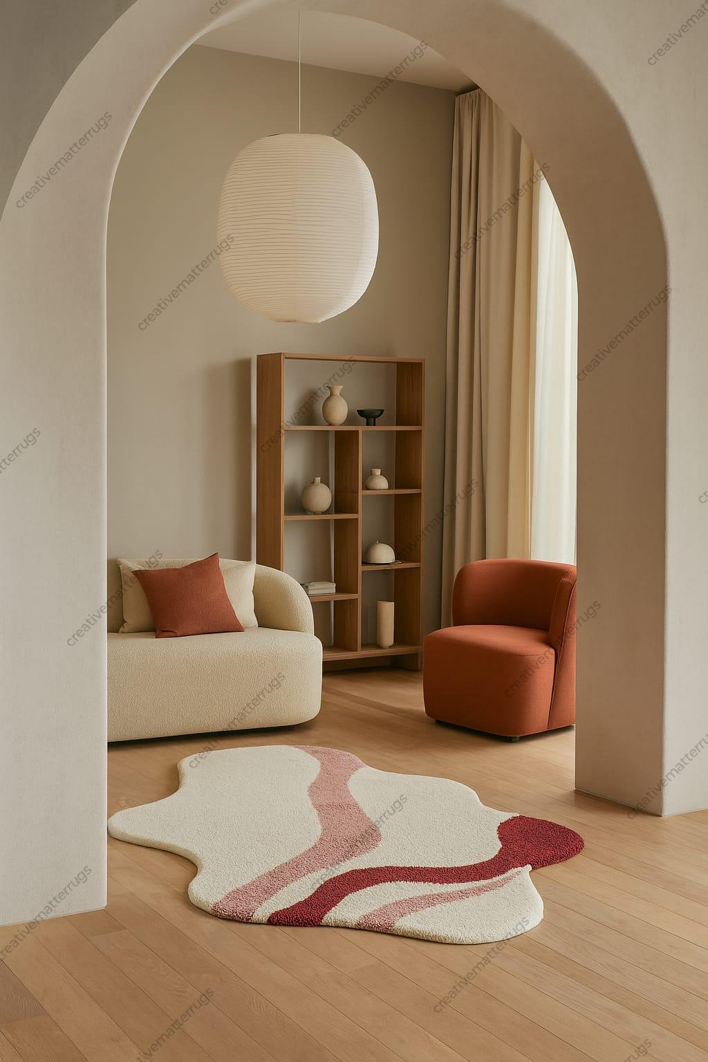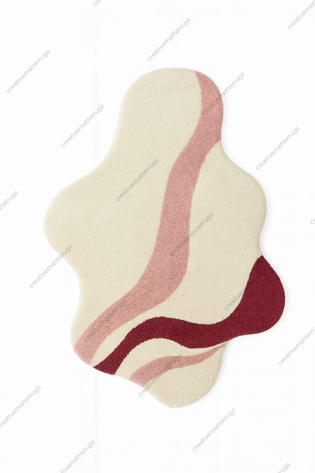 Minimalist Wool Area Rug: Irregular Shape, Pink & Burgundy (8x10)