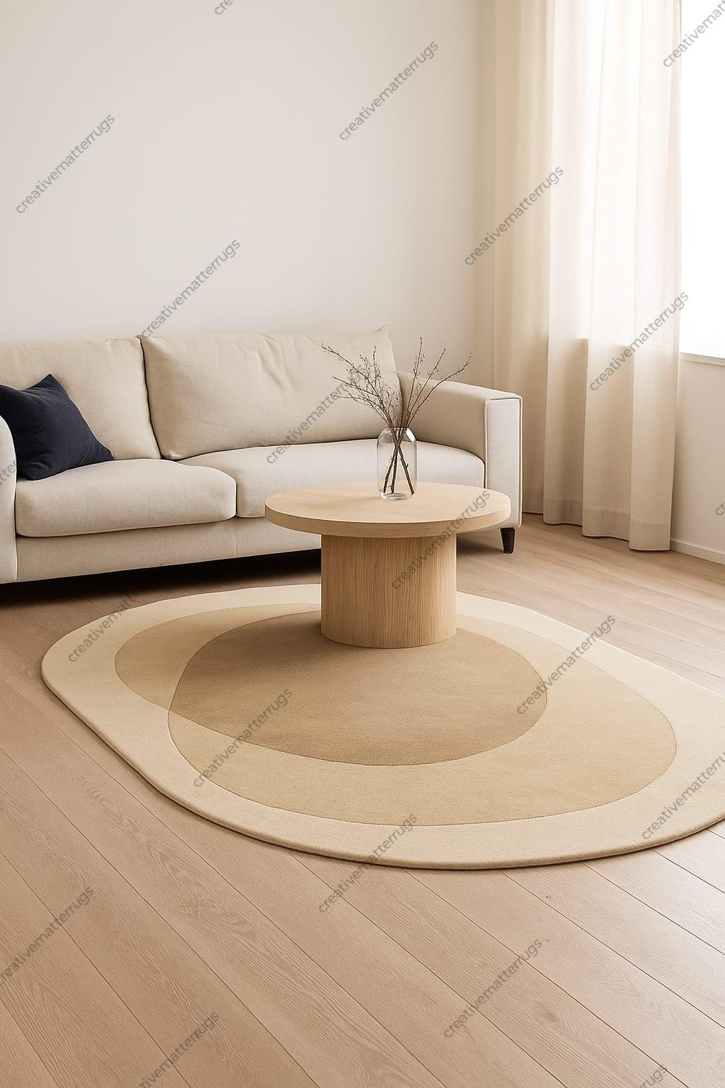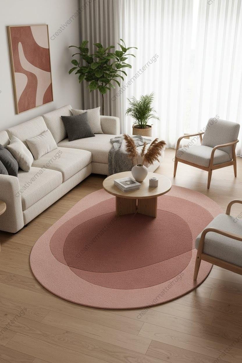 Hand-Tufted Wool Area Rug, Abstract Blush Pink, Contemporary Oval Carpet
