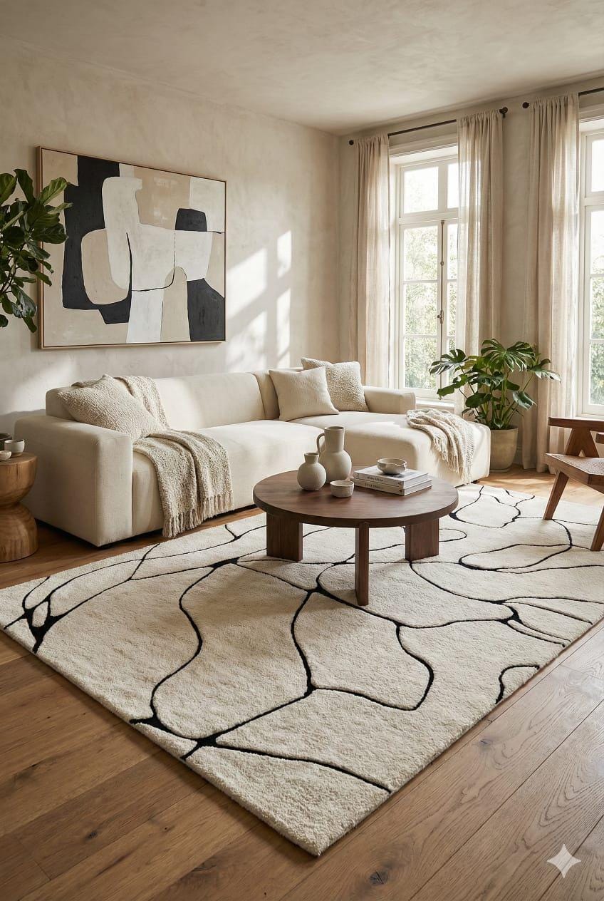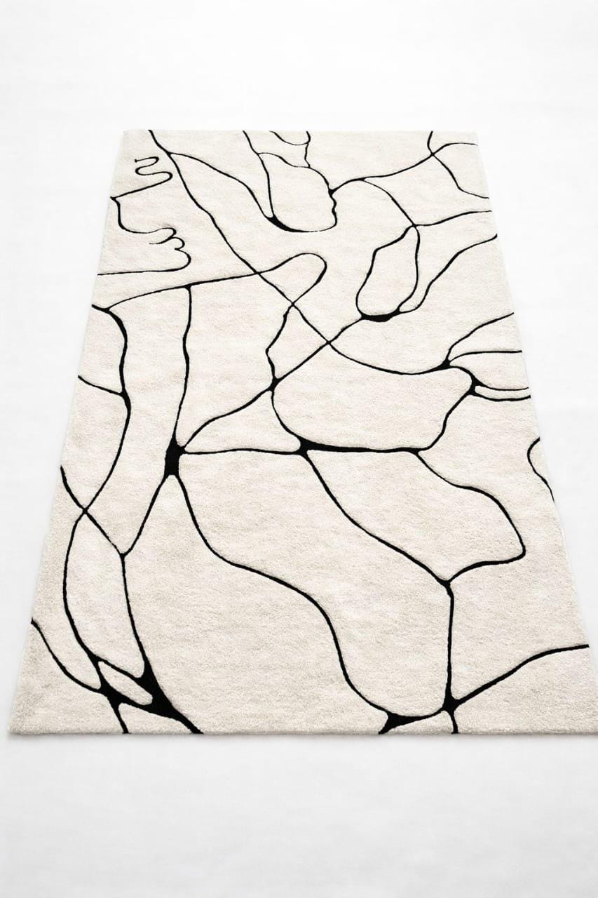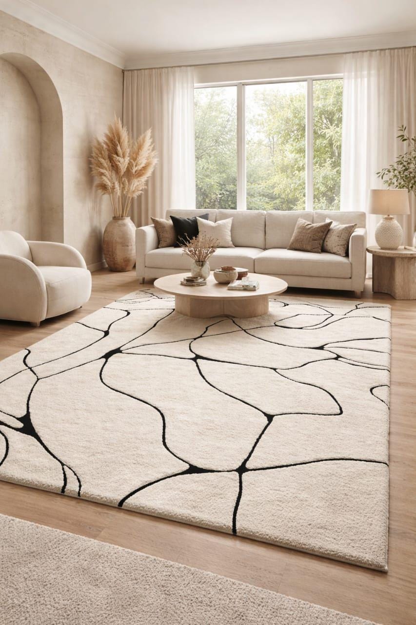 Hand Tufted Abstract Area Rug, Modern Ivory Wool Rug, Minimalist Black Line Handmade Carpet custom area rug personalized gift soft rug