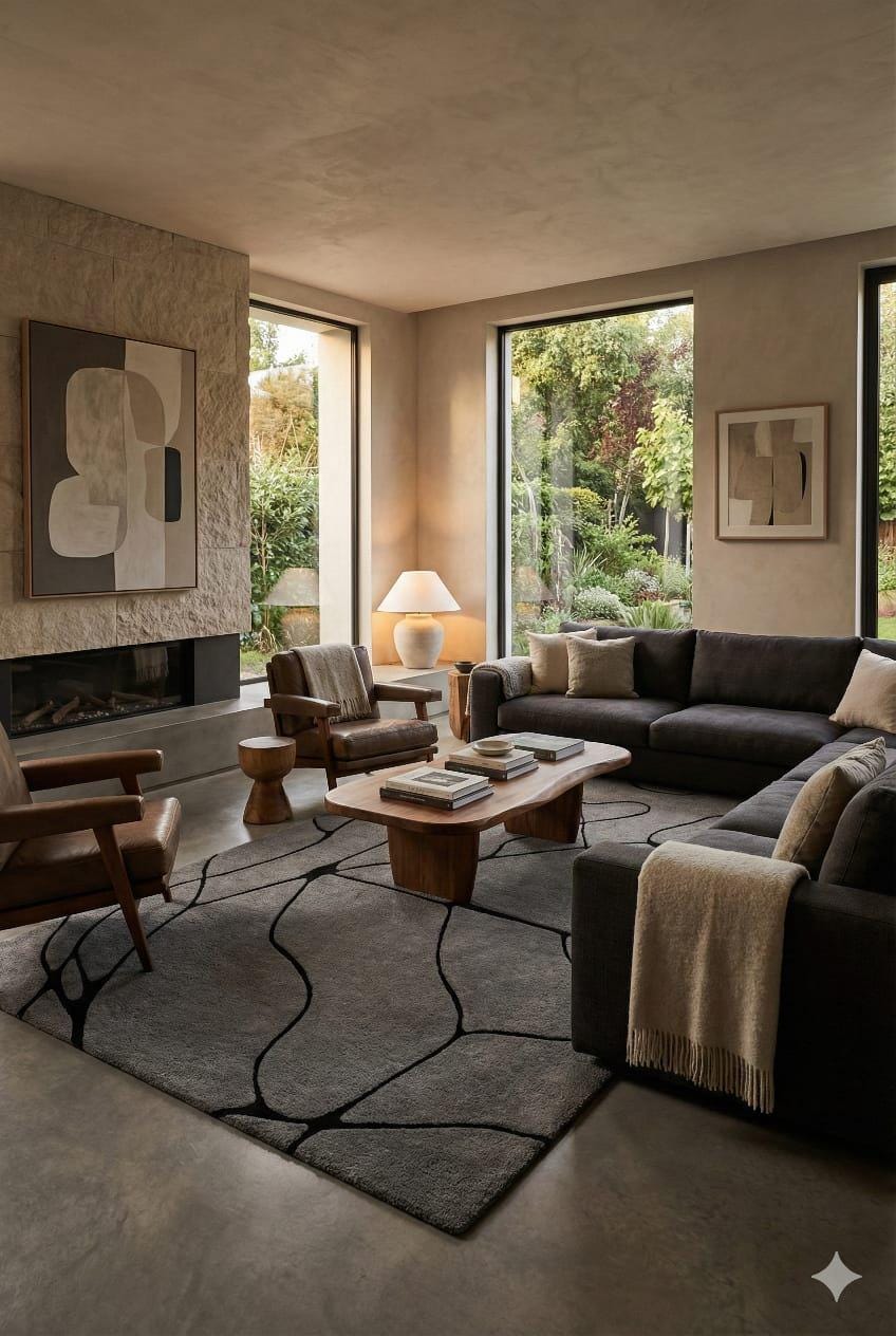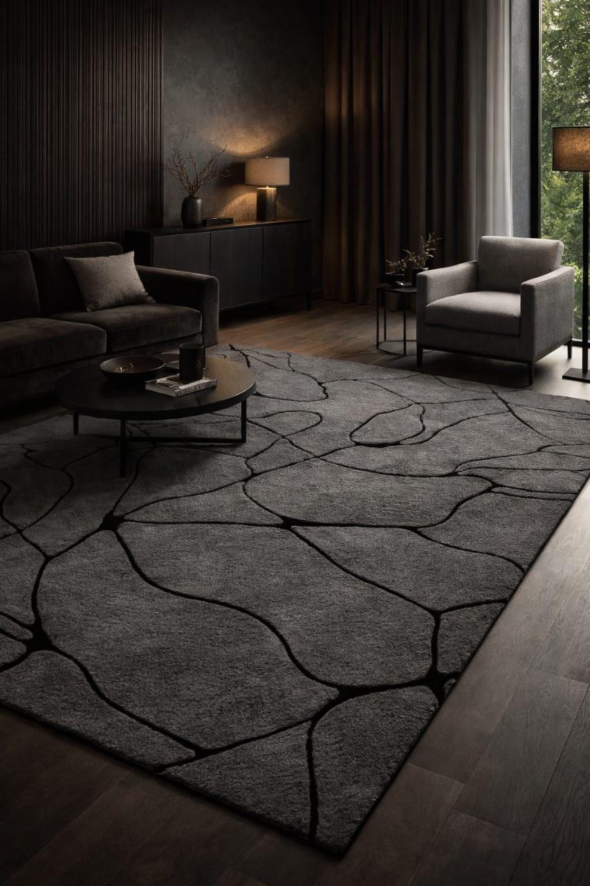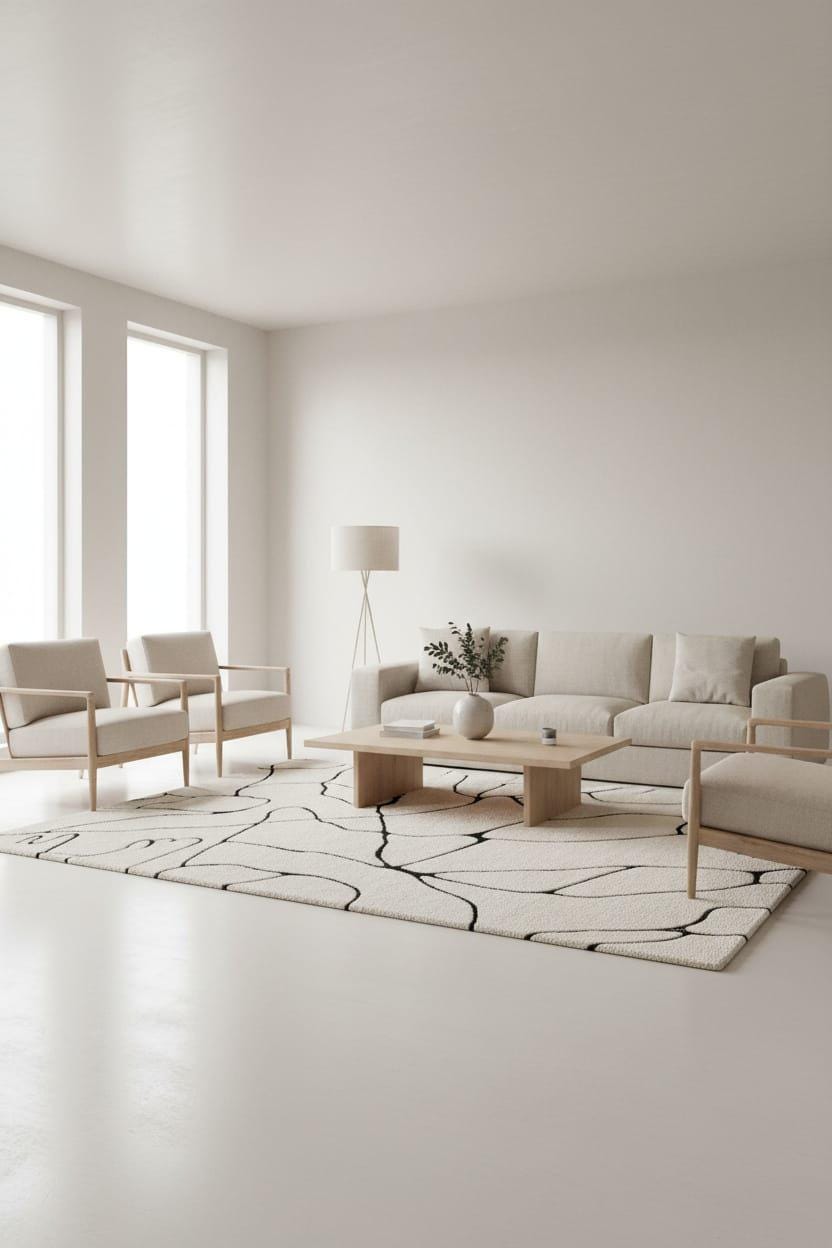 Hand Tufted Abstract Area Rug, Modern Ivory Wool Rug, Minimalist Black Line Handmade Carpet custom area rug personalized gift soft rug