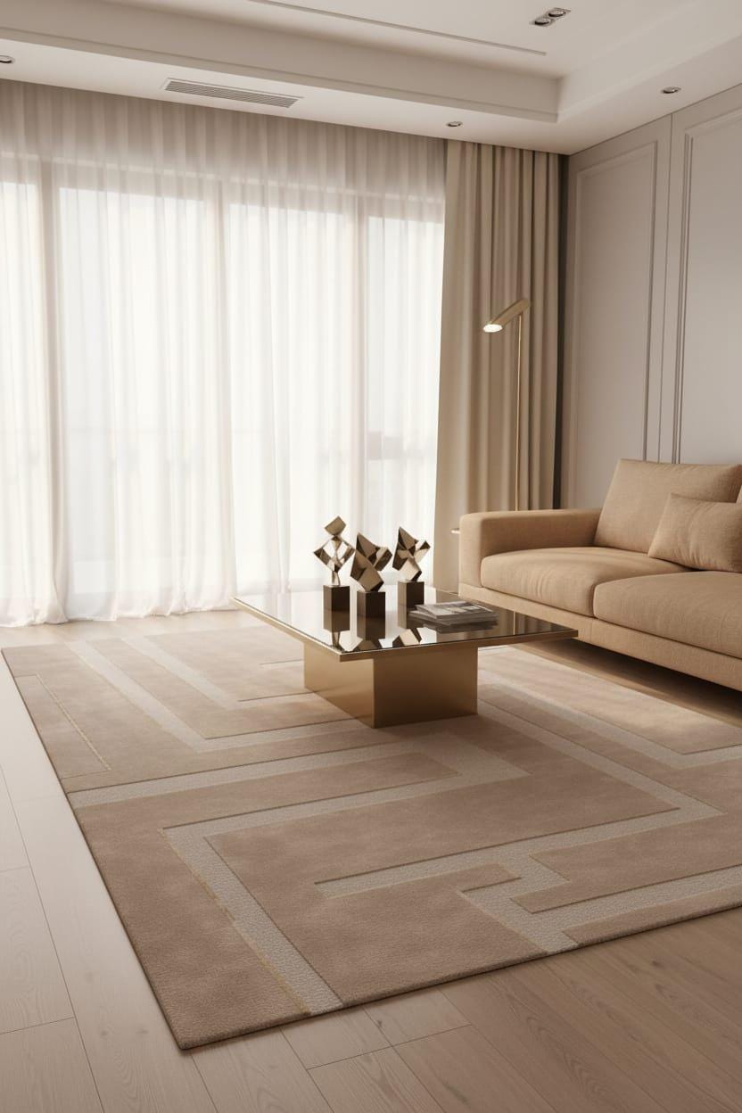 Hand Tufted Wool Rug, Neutral Beige Modern Area Rug, Luxury Living Room Carpet, Minimal Geometric Designer Rug personalized gift custom wool