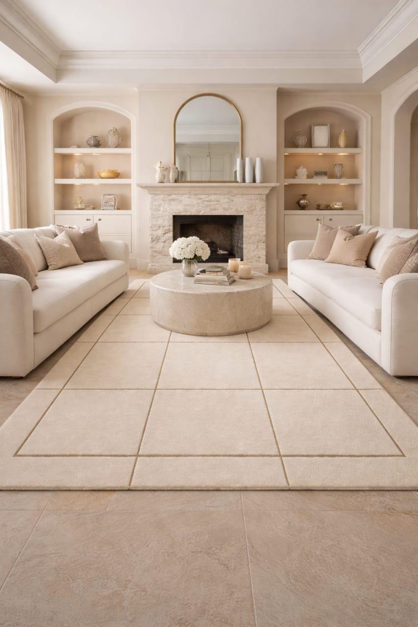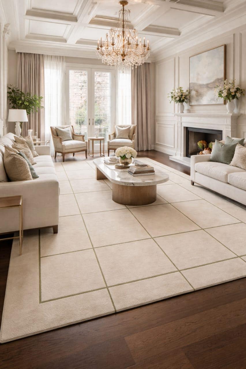 Luxury Hand Tufted Wool Rug, Minimal Grid Pattern Area Rug, Modern Classic Living Room Decor personalized gifts custom wool rug grid pattern