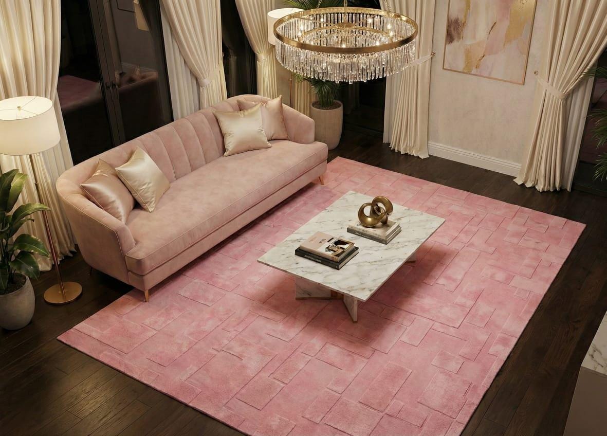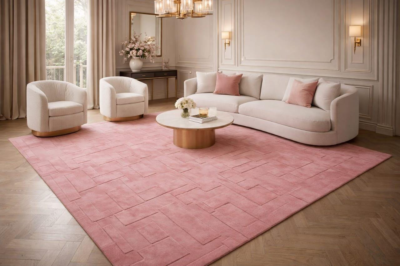 Hand Tufted Pink Area Rug, Modern Textured Wool Rug, Handmade Contemporary Carpet for Living Room bedroom rug personalized gift soft rug
