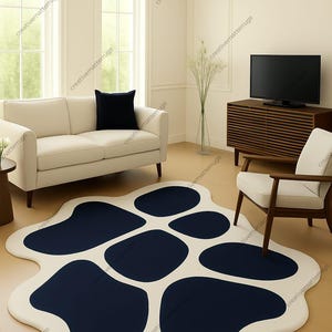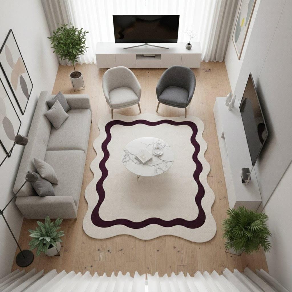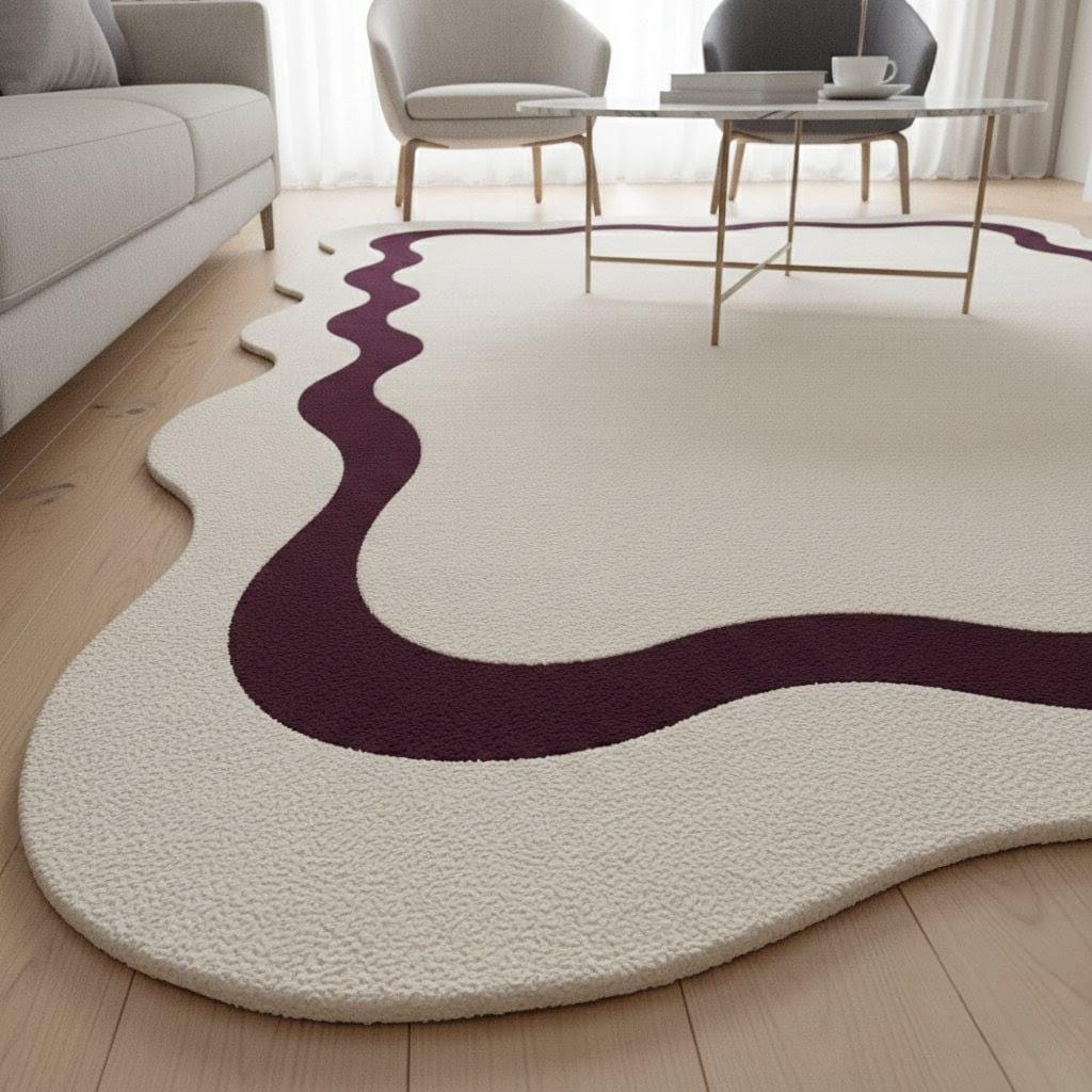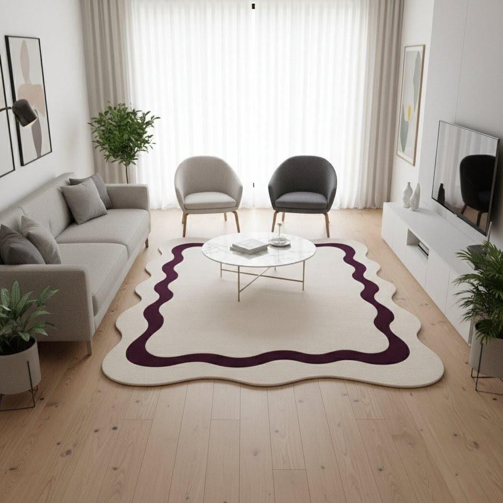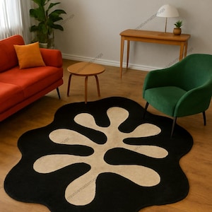 Hand Tufted Abstract Rug, Modern Wavy Edge Area Rug, Handmade Contemporary Living Room Carpet, Custom Size Floor Rug irregular shape rug