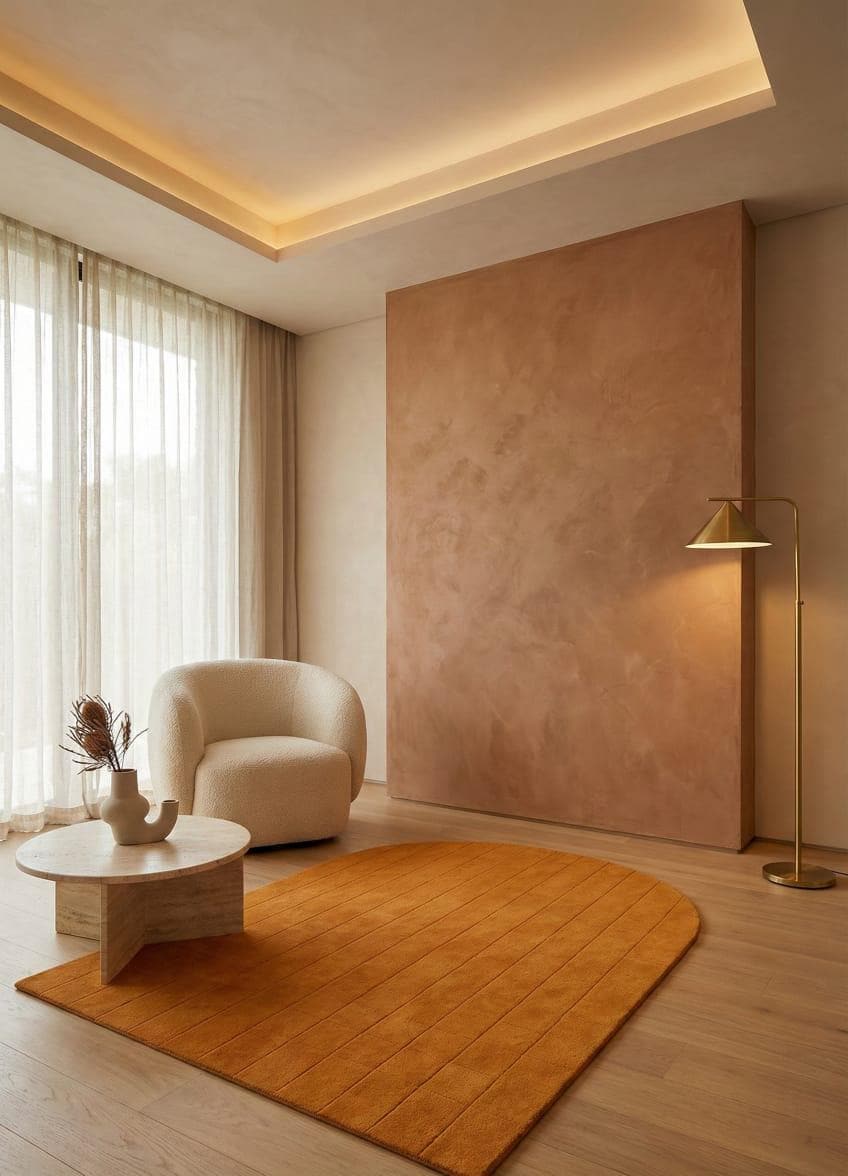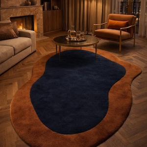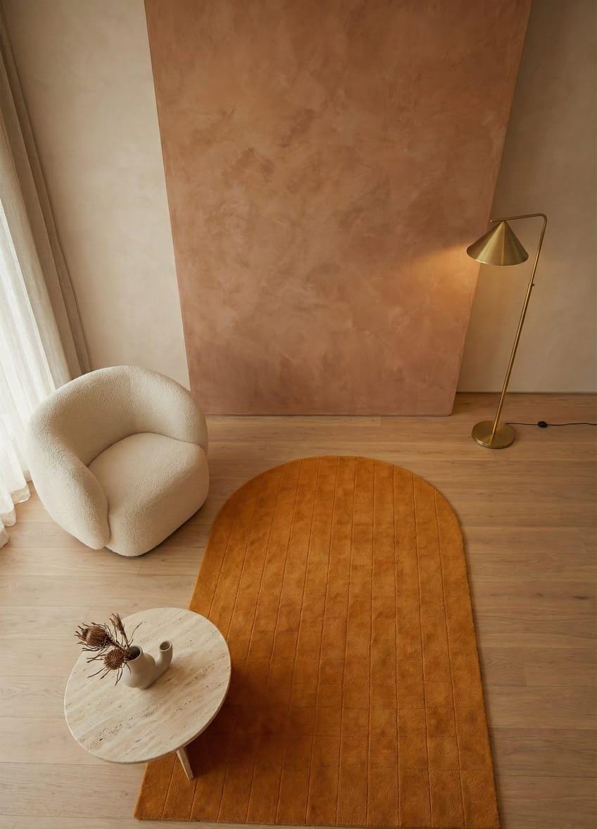 Hand Tufted Mustard Arch Rug, Modern Curved Area Rug, Handmade Minimalist Wool Carpet, Contemporary Sculptural Floor Rug