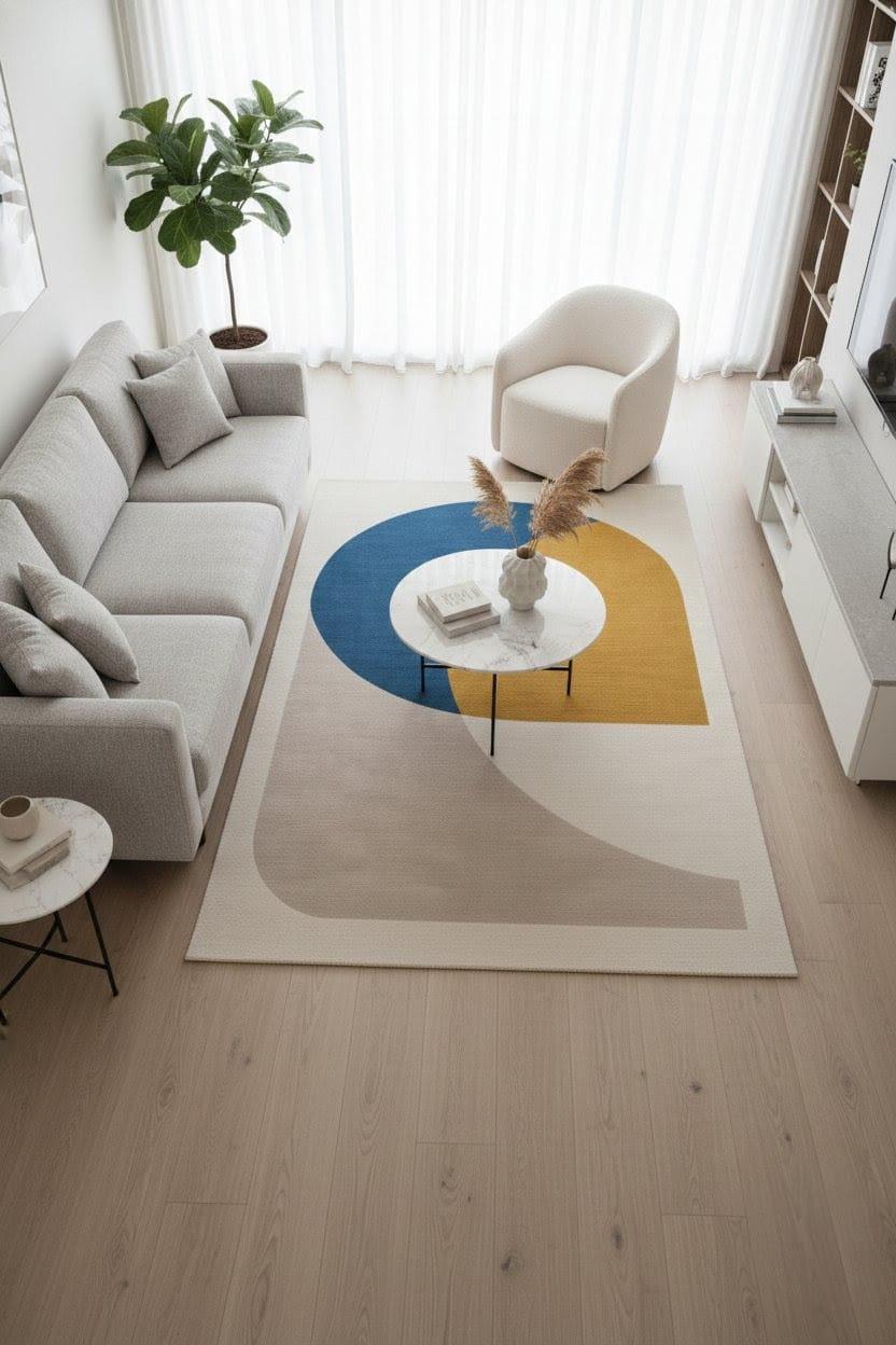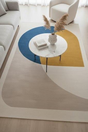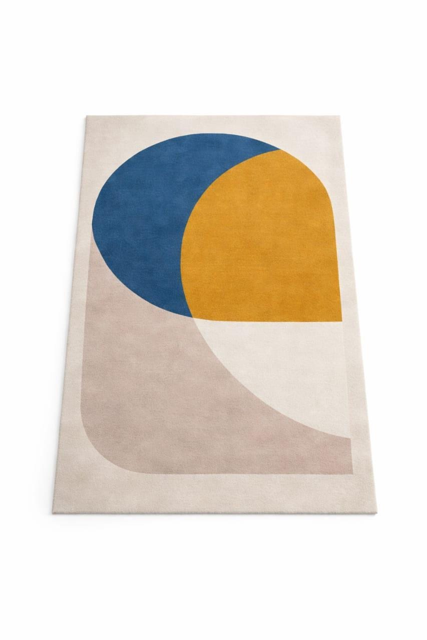 Mid Century Modern Hand Tufted Rug – Abstract Blue Yellow Wool Rug Modern Abstract Neutral & Bold Color Rug custom rug Home decor living