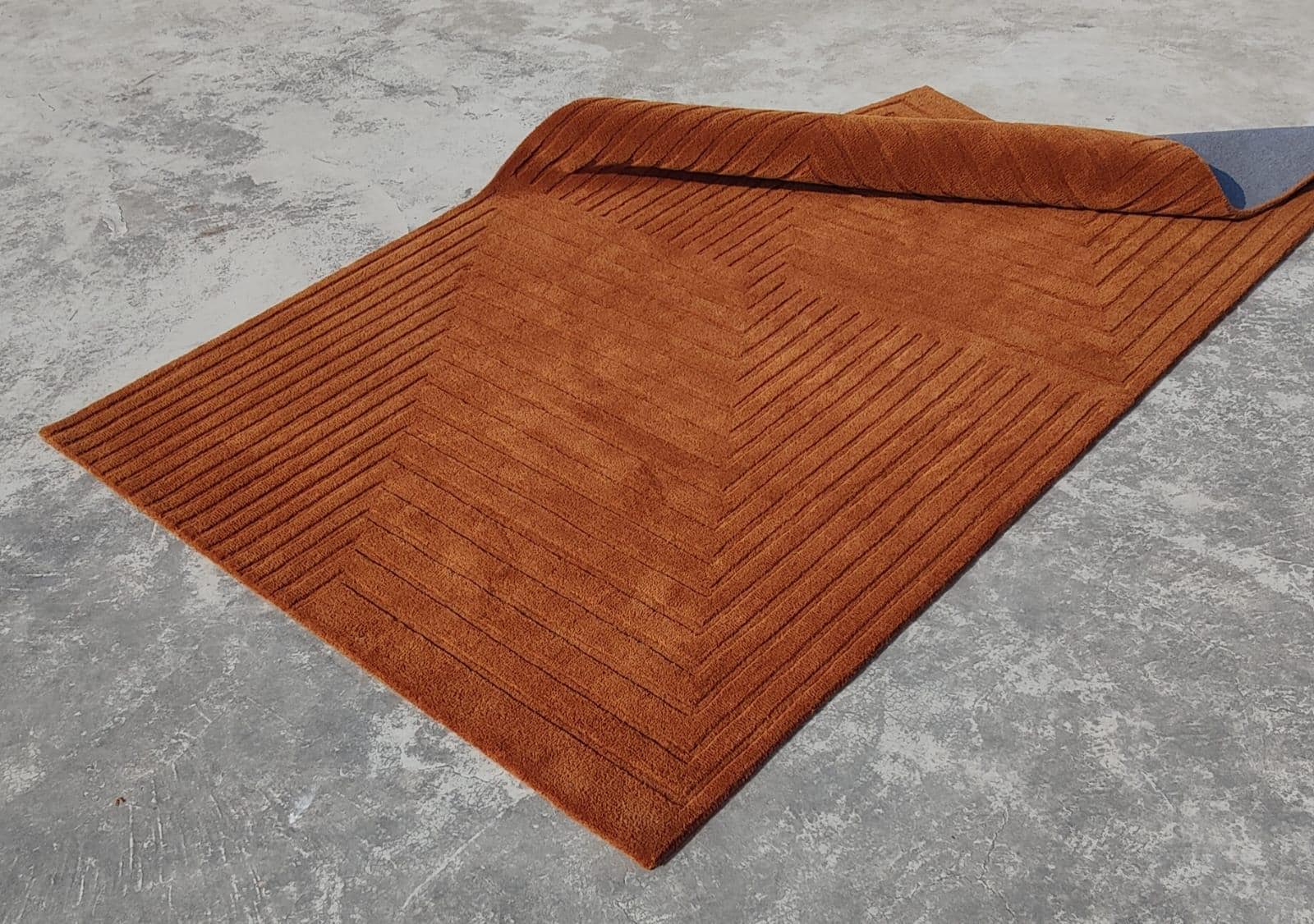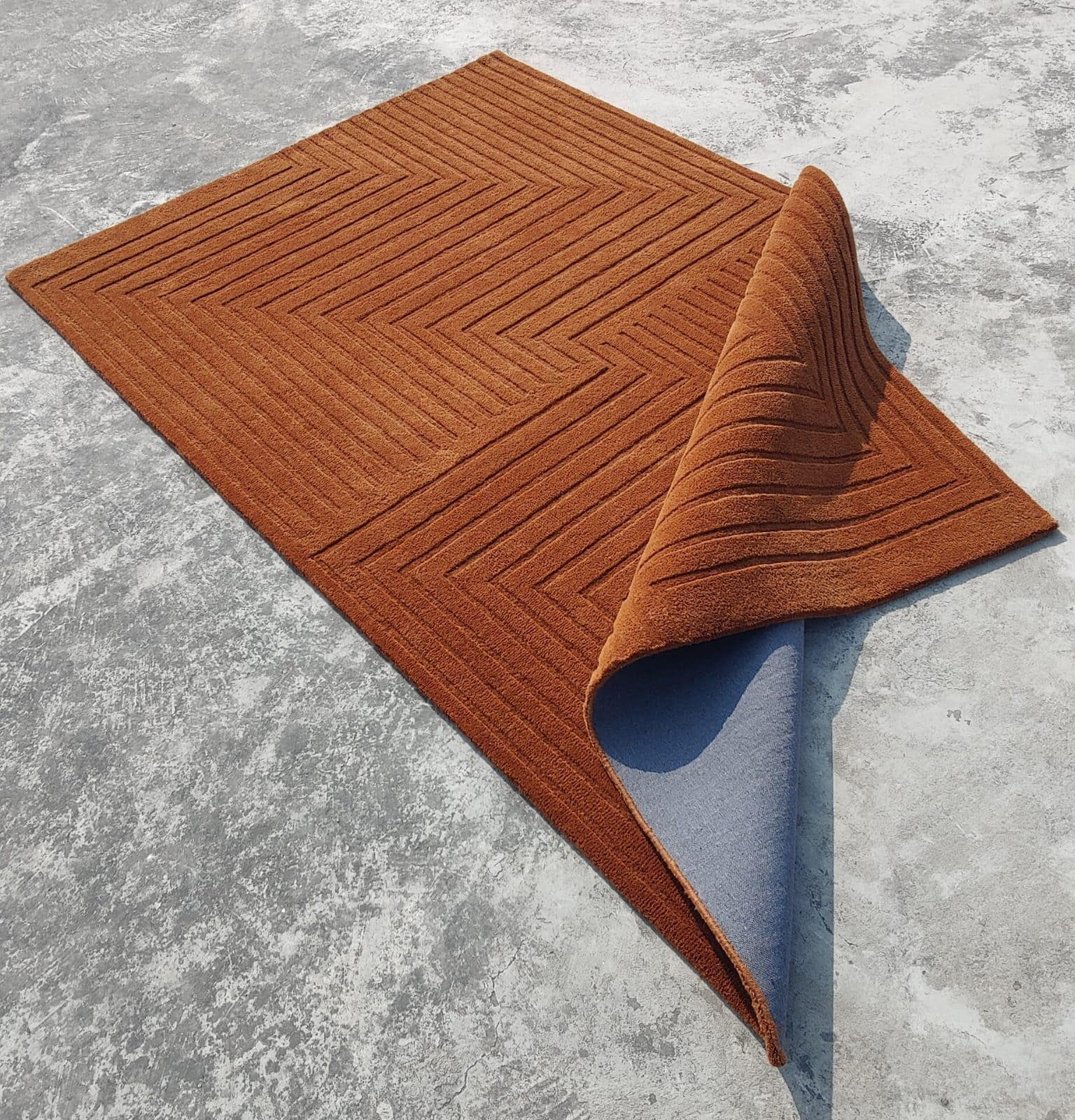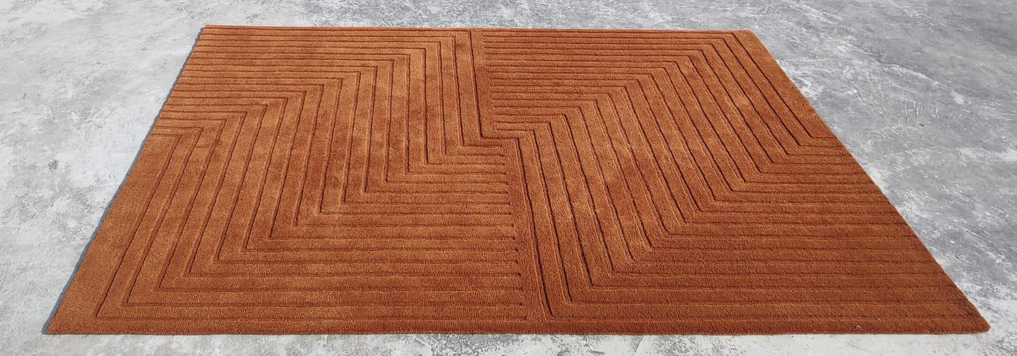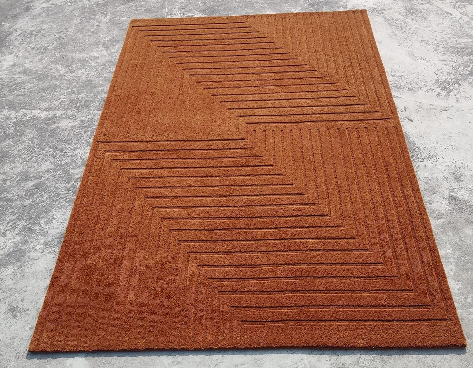 Contemporary Hand Tufted Rug – Rust Brown Linear Pattern Modern Area Rug personalized gifts soft rug Newzealand wool rug custom rug boho rug