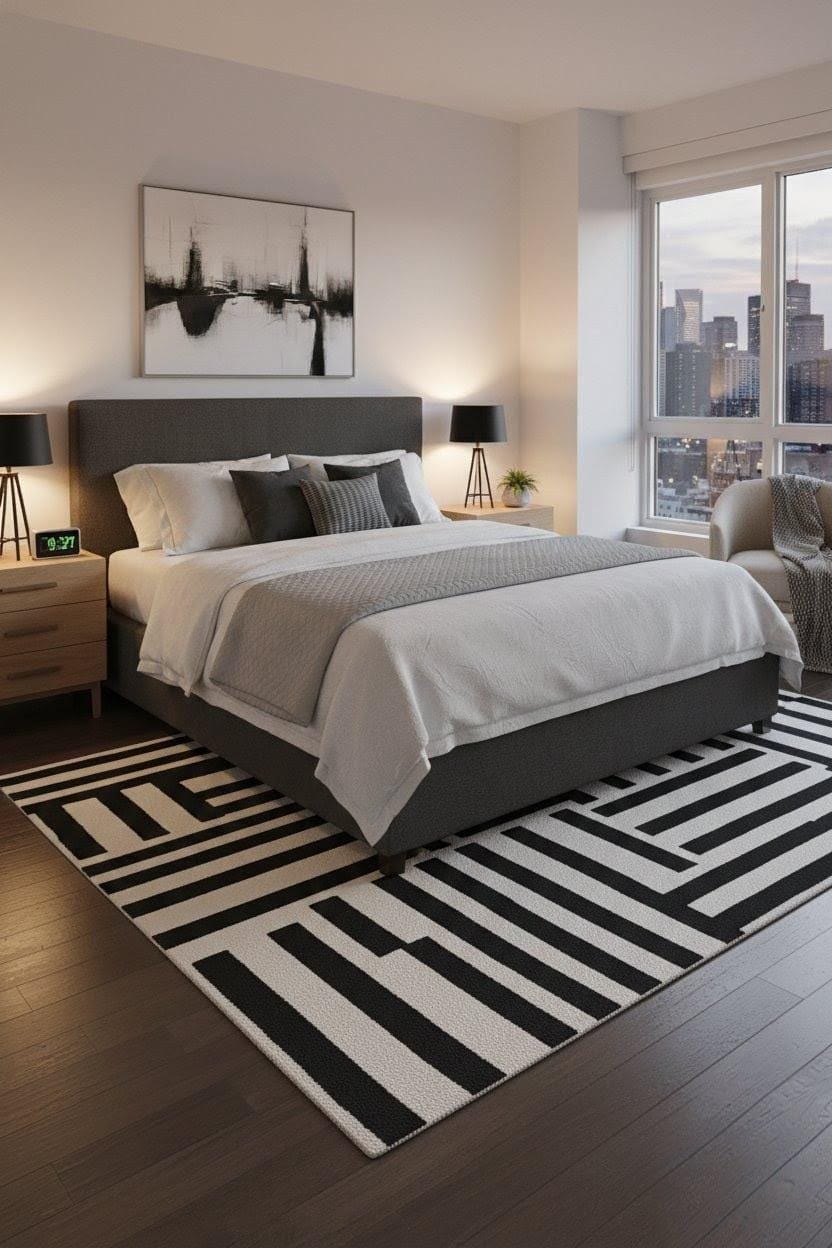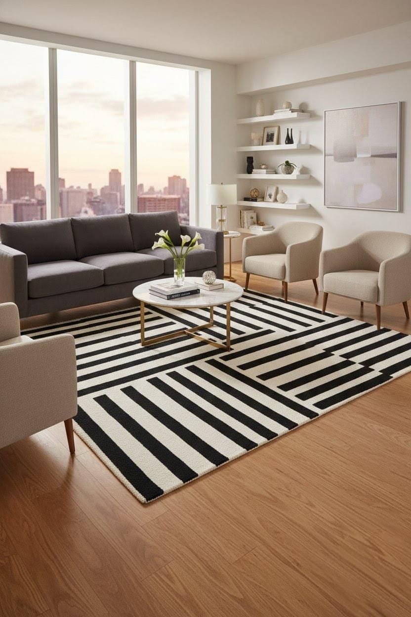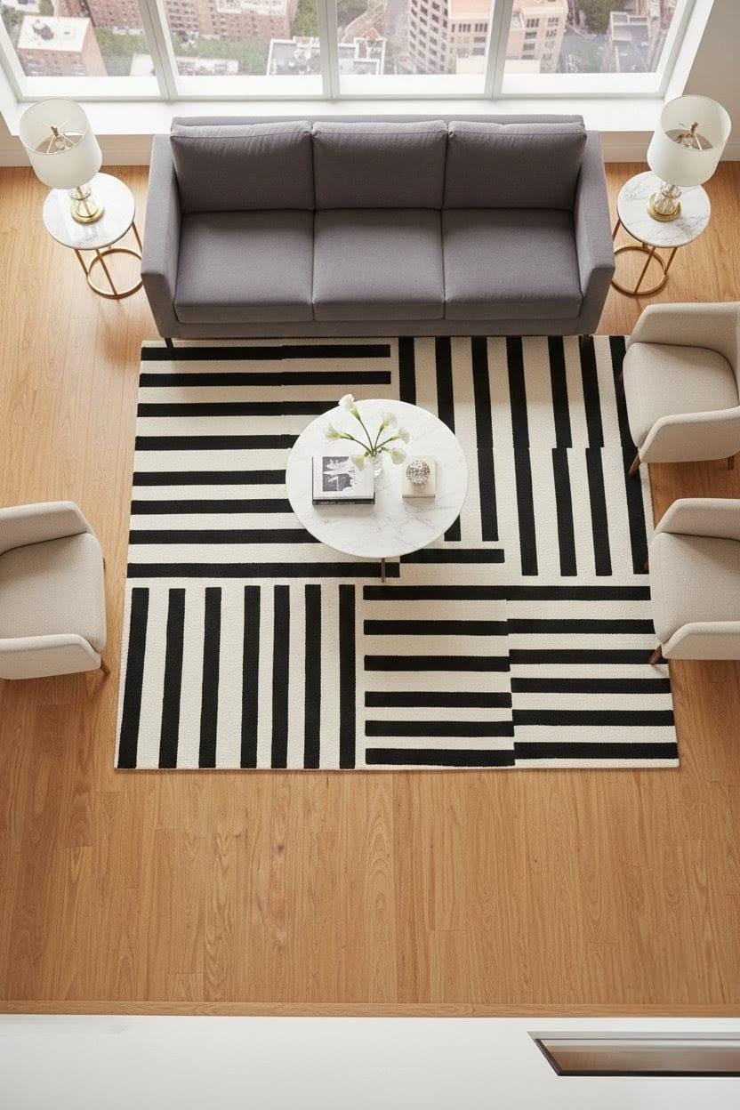 Minimalist Hand Tufted Rug – Black White Modern Geometric Floor Rug for living room bedroom kid you guest room contemporary rug Newzealand