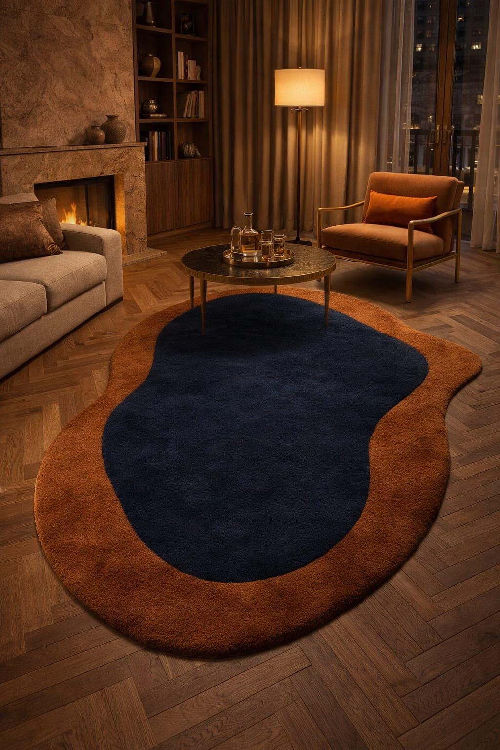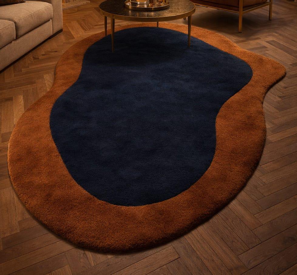 Handmade Tufted Rug – Contemporary Abstract Navy Brown Living Room Rug custom rug soft rug woolen rug Newzealand wool rug personalized gifts