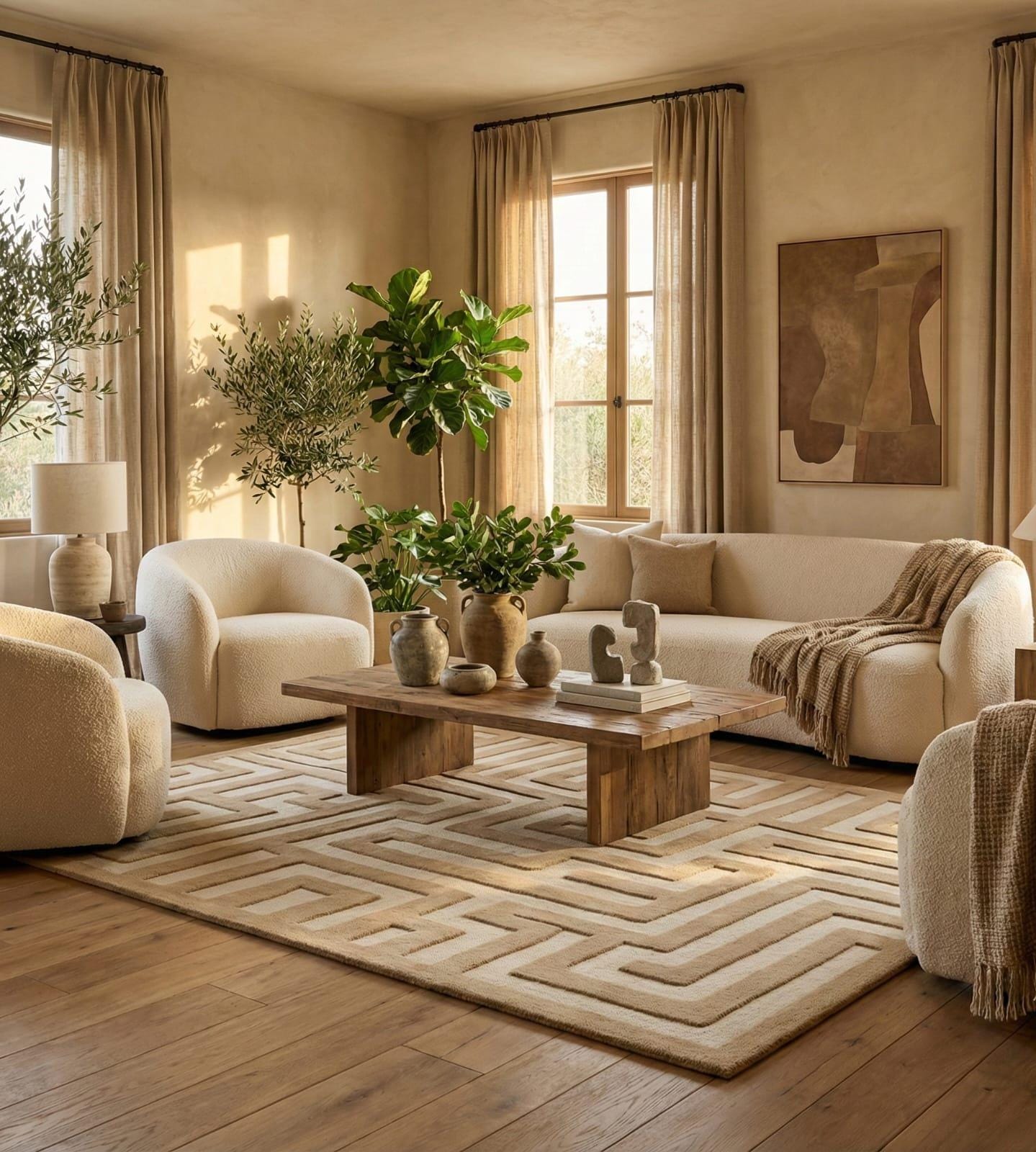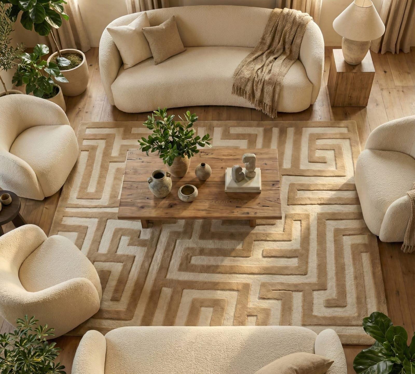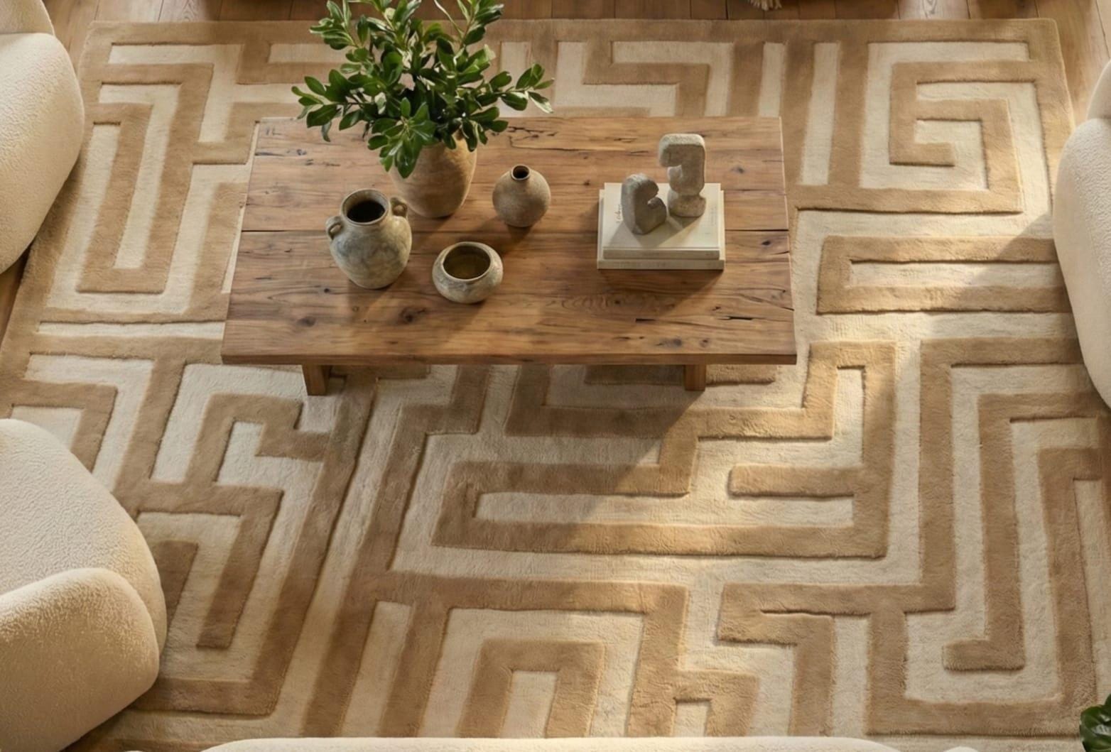 Handmade Tufted Rug – Minimalist Beige Ivory Abstract Area Rug for living room bedroom rug custom rug woolen rug soft rug personalized gifts
