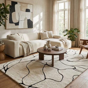 Retro Abstract Hand Tufted Rug, Mid Century Style Wool Area Rug for Living Room bedroom rug kid room soft rug woolen rug Newzealand wool